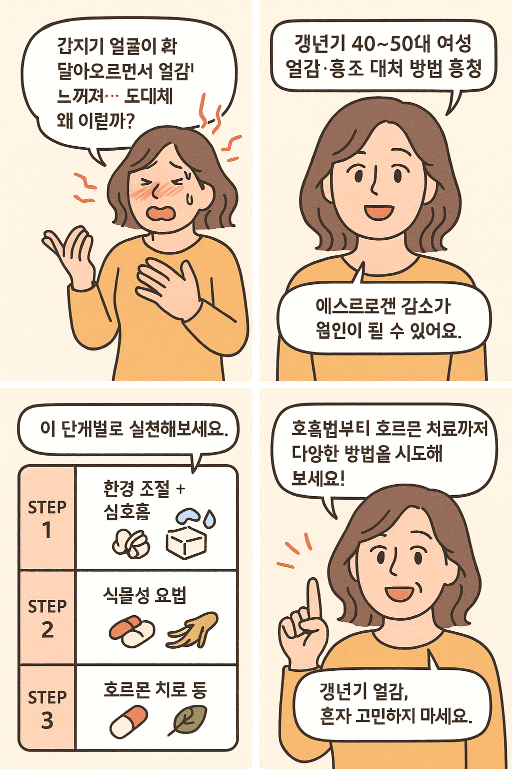 - 갱년기 40~50대 여성 열감·홍조 대처는 단계별 접근이 핵심: