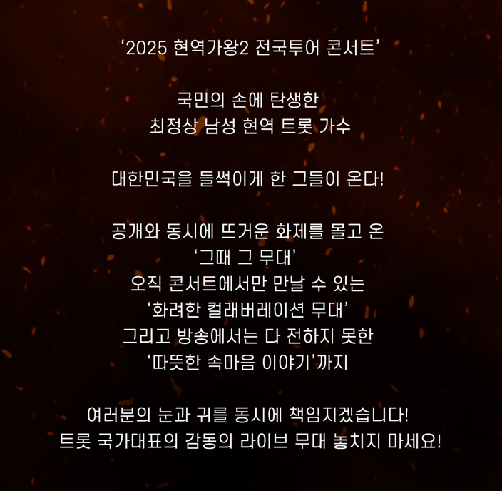 2025 현역가왕2 구미 콘서트는 트로트 팬이라면 절대 놓치면 안 될 공연입니다.