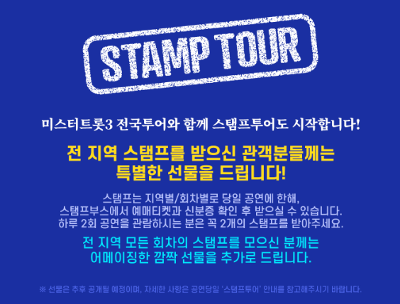 이번 미스터트롯3 포항 공연은 단순한 라이브 콘서트를 넘어, 스탬프 이벤트·할인 혜택·휠체어석 배려 등 모든 팬층을 위한 배려가 가득합니다.